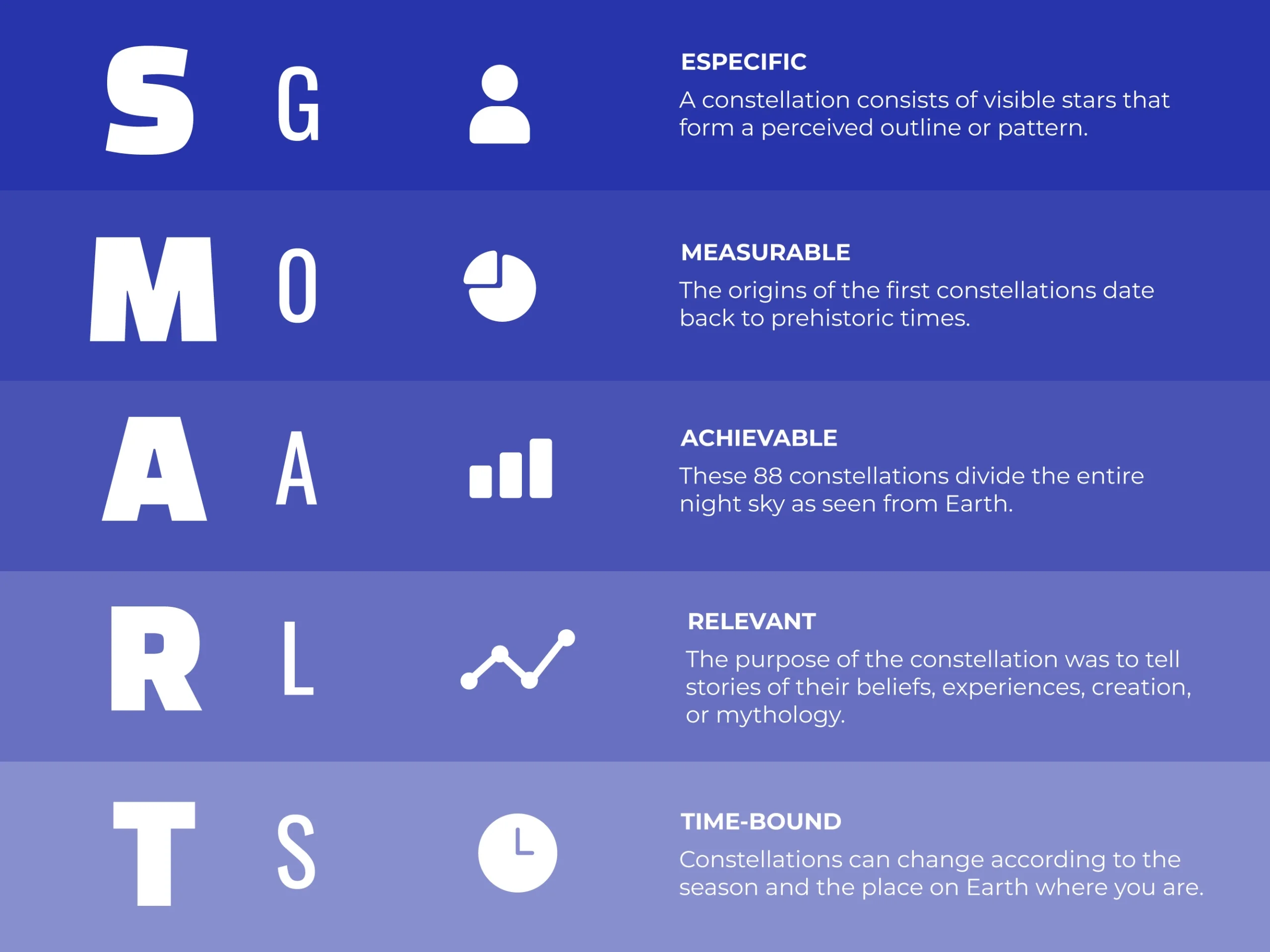Elemen pertama dari metode SMART adalah specific. Dalam menentukan tujuan, kamu harus jelas dan tidak ambigu. Jika tidak, kamu akan kesulitan ketika harus fokus pada tujuan yang ingin kamu capai. Pertimbangkan tujuan kamu dalam bentuk yang dapat diukur dengan beberapa pertanyaan berikut: